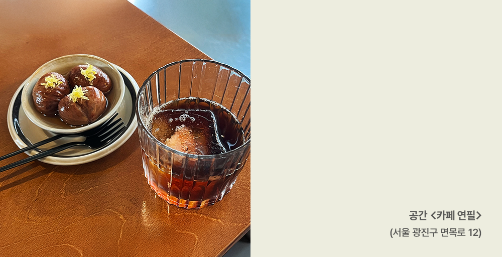 삶이 권태로워질 때면 쓸데없는 고민이나 상념이 늘어나기 마련. 머릿속을 떠도는 고민을 직접 글로 정리하는 것도 하나의 방법이다. 이럴 때면 찾게 되는 카페 연필. 주문서부터 직접 연필로 작성해야 하는 이곳의 아날로그 감성은 끄적이는 즐거움을 더해 줄 테다. 묵직한 재즈와 달콤한 보늬밤 페어링은 덤.