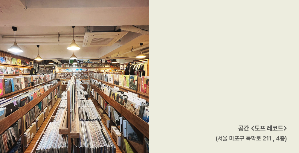 내 앞에 놓인 선택의 순간들이 어렵게만 느껴질 때, 오히려 선택지로 가득한 바이닐숍에 간다. 커다랗고 네모난 표지 속 아트워크가 내뿜는 심상, 거기에 반영된 시대상과 아티스트의 개성을 관찰하는 게 좋다. 바이닐과 카세트테이프 뿐 아니라 음악 관련 굿즈들도 판매한다.