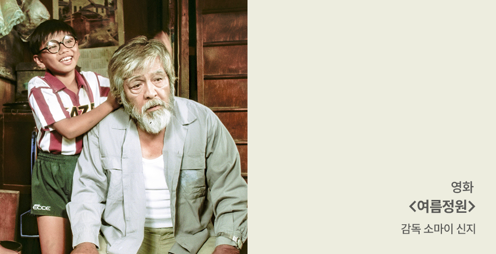 어린 시절, 뜻 맞는 친구들과 함께 무언가를 도모해 본 경험은 이후의 평생을 먹고살게 한다. 그것이 누군가를 구원하고 살아내게 하기 위함이라면 더더욱. 무성한 나무들과 허름한 집에서 홀로 살아가는 이상한 할아버지에게 궁금증이 생긴 세 친구는 여름방학을 맞아 매일같이 그 할아버지를 관찰한다. 성가셔하던 할아버지는 어느 날, 아이들에게 집안으로 들어오라 말하고, 그날부터 특별한 인연이 시작된다. 묵은 쓰레기를 버리고 지붕과 유리를 새로 다는 뜨거운 땀방울과 손길은 이 세상에 단 하나밖에 없는 여름정원을 짓는데, 이 우애어린 시간이 왠지 눈물겨워서 영화가 영원히 끝나지 않기만을 바랐다. / 문학동네 이재현 편집자