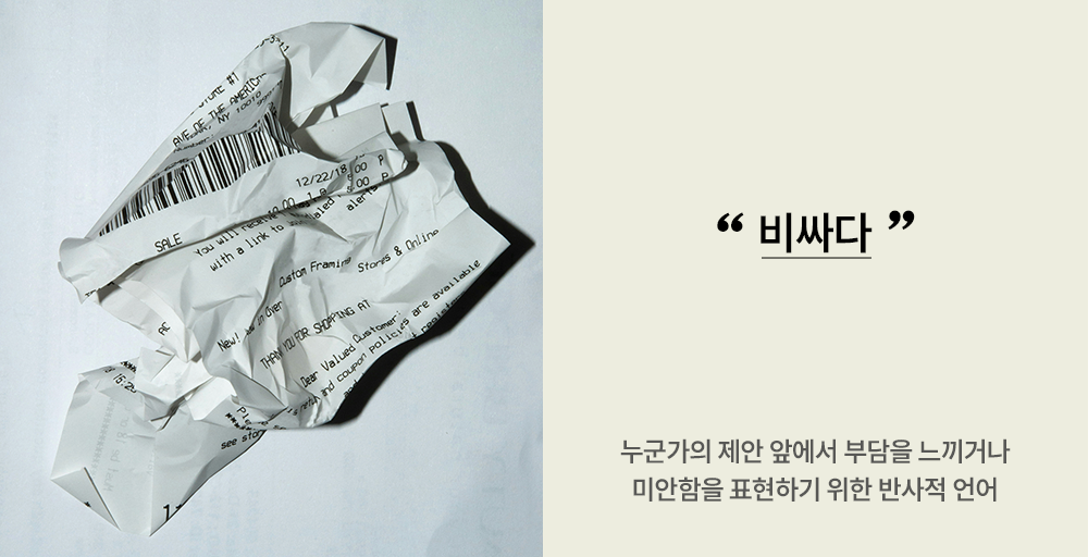 이 ‘비싸다’라는 말을 언제 가장 자주 듣게 될까요? 사람마다 다르겠지만, 제 경우에는 부모님과 대화할 때 유독 자주 듣게 됩니다. 부모님 선물을 골랐을 때, 외식을 하러 나갔을 때, 특히 제가 먼저 “오늘 저녁은 내가 살게!”라고 말한 뒤 메뉴를 고를 때면 거의 빠지지 않고 등장하는 말이기도 하지요.