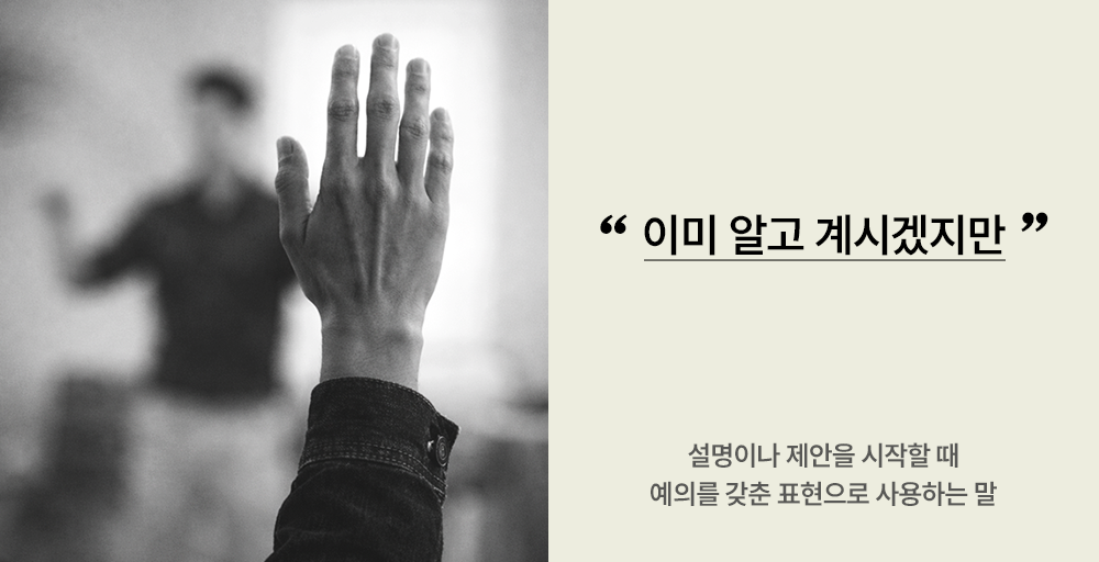 뭔가를 설명해야 할 때, 입버릇처럼 하는 말이 있습니다. ‘이미 알고 계시겠지만’입니다. ‘제가 잘난 척하려는 건 아니고요’와 같은 마음을 담아, 겸손함을 표현하고자 사용해요. 특히 상대가 나보다 경험이 많거나, 연장자이거나, 처음 만난 관계일수록 이런 수식어는 더 자주 붙습니다. 말 그대로 ‘배려의 문장’처럼 느껴지기도 합니다.