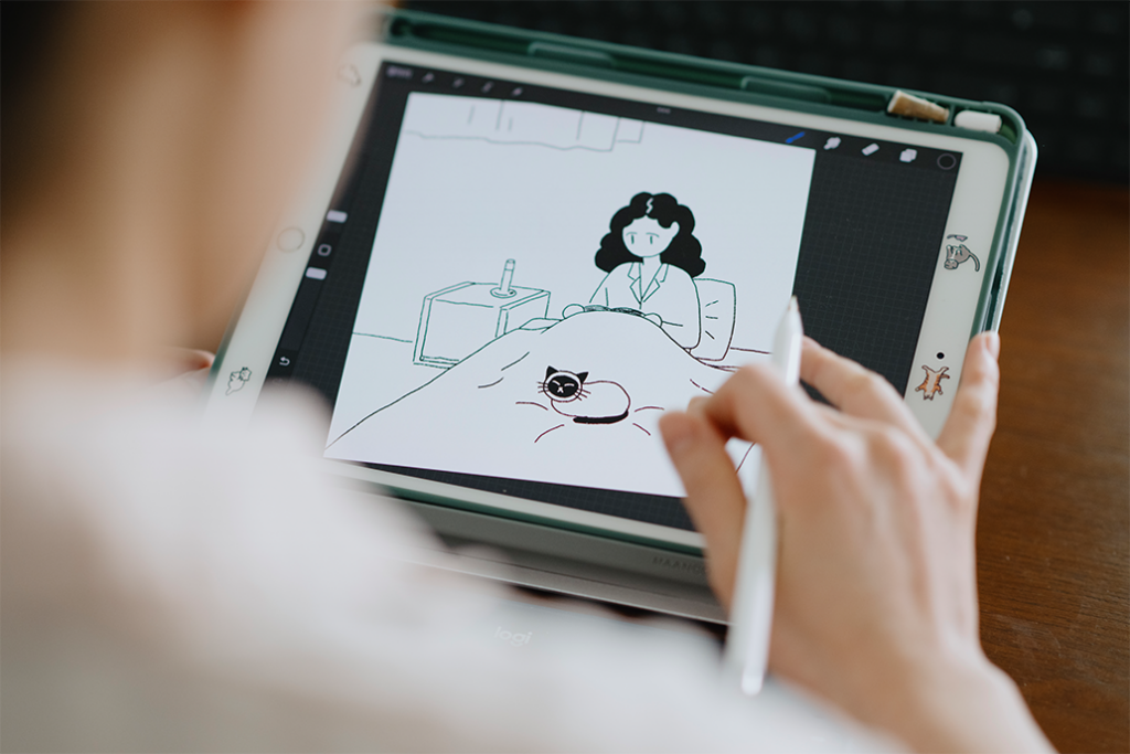 화요일과 목요일은 일러스트레이터로, 나머지 월, 수, 금요일은 청소부로 일하고 있어요. 청소일은 오전 7시쯤 시작해서 오후 1시에 끝나요. 그 후에는 온전한 자유시간이에요. 친구를 만나거나 운동을 하면서 하루를 마무리하죠. 한편 프리랜서 작가로 모드 전환이 되는 화요일과 목요일에는 비교적 느긋하게 일어나서 오후에 일을 하기 시작해요. 오후 1시부터 8시까지 쭉 그림을 그리는 편이에요.