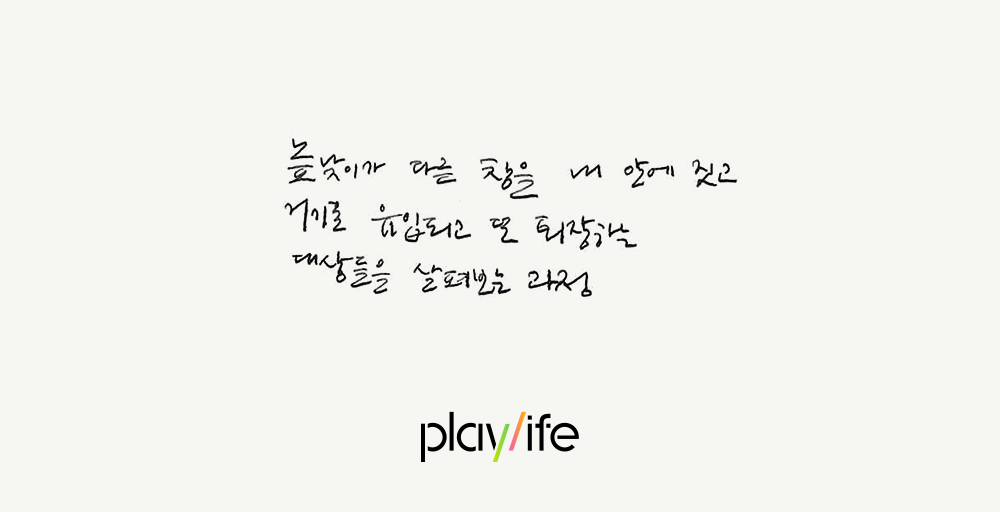 일정이나 약속에 의해서 알게 되는 시간 말고, 주변을 관찰하거나 우연히 마주하는 것들 속에서 시간의 흐름을 감각할 때 잘 살고 있다고 느껴요. 너무 바쁠 때는 시간이 어떻게 흘러가는지 모르잖아요. 지나면 끝나 있고. 저는 반려묘 ‘숙희’와 ‘남희’의 변화를 관찰하거나, 짝꿍과 아무것도 하지 않으면서 나누는 대화 속에서 그런 것들을 느끼곤 해요.