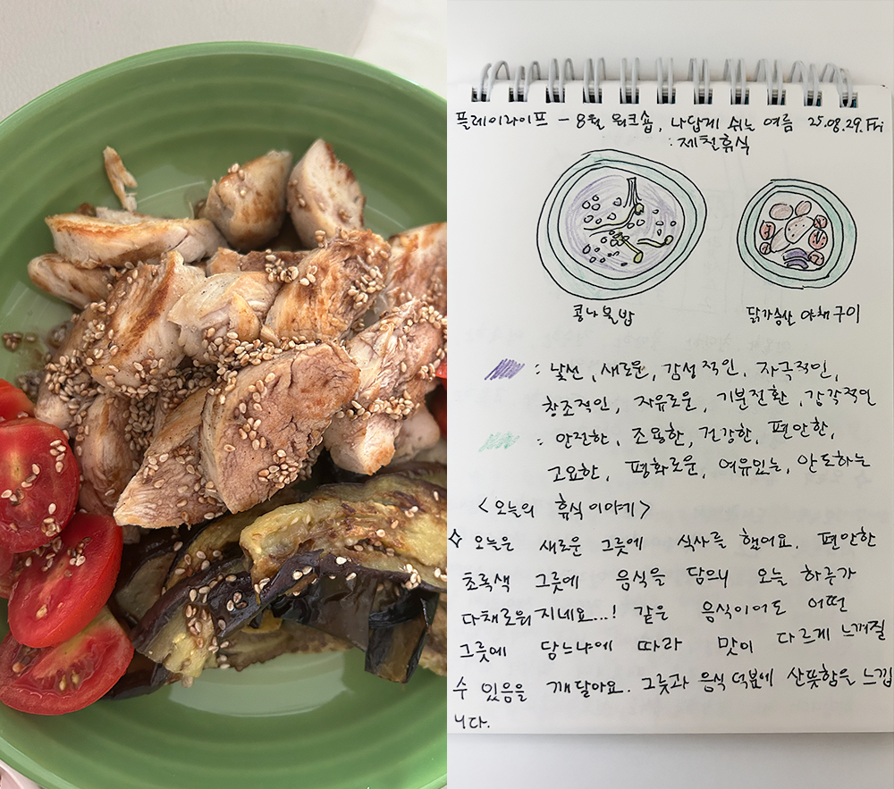 저도 덩달아 용기를 얻게 되어서 감사했어요. 올려 주시는 이야기 중에 정성껏 채소를 구워서 카레를 만들었다는 걸 보고, 저도 식사시간을 조금 더 나를 위한 순간으로 계획하게 되었어요.