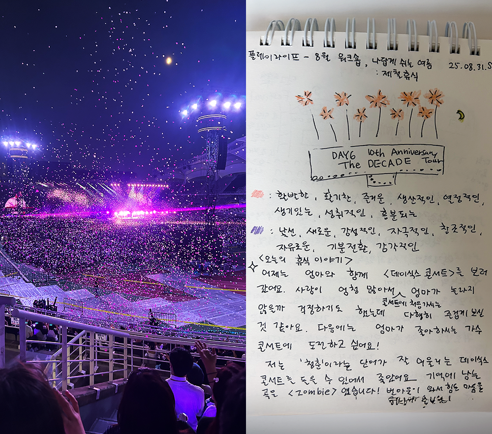 지난 기록을 되돌아보니, 가장 많이 등장한 키워드는 ‘연결’이었어요. 도서관에서 빌려갈 책을 발견할 때, 가족들과 예쁜 그릇에 식사를 할 때, 콘서트 현장에서 떼창을 부를 때 연결되는 느낌이 저를 행복하게 해요.