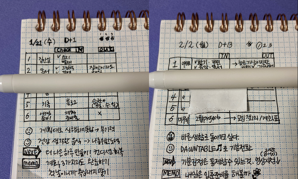 워크숍 중 가장 기억에 남는 순간은 컨디션이 좋지 않은 날의 플래너 활용법을 들었을 때예요. “꼭 해야 할 일 한 가지만 한 블록에 넣고, 나머지는 휴식으로 채워도 된다”는 말 덕분에, 예상치 못한 일이 생긴 날에도 플래너를 덮지 않을 수 있었습니다. 또 플래너는 남에게 보여주기 위한 기록이 아니라, 나의 실행을 돕는 도구라는 점도 깊이 와닿았어요. 예쁜 기록에 대한 부담을 내려놓고, 저에게 가장 편한 방식을 선택할 수 있었죠.